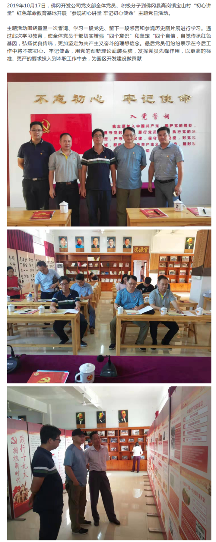 - 支部風(fēng)采 - 佛岡開(kāi)發(fā)公司黨支部到寶山村“初心講堂”開(kāi)展主題黨日活動(dòng) 2019年10月17日,佛岡開(kāi)發(fā)公司黨支部全體黨員、積極分子到佛岡縣高崗鎮(zhèn)寶山村“初心講堂