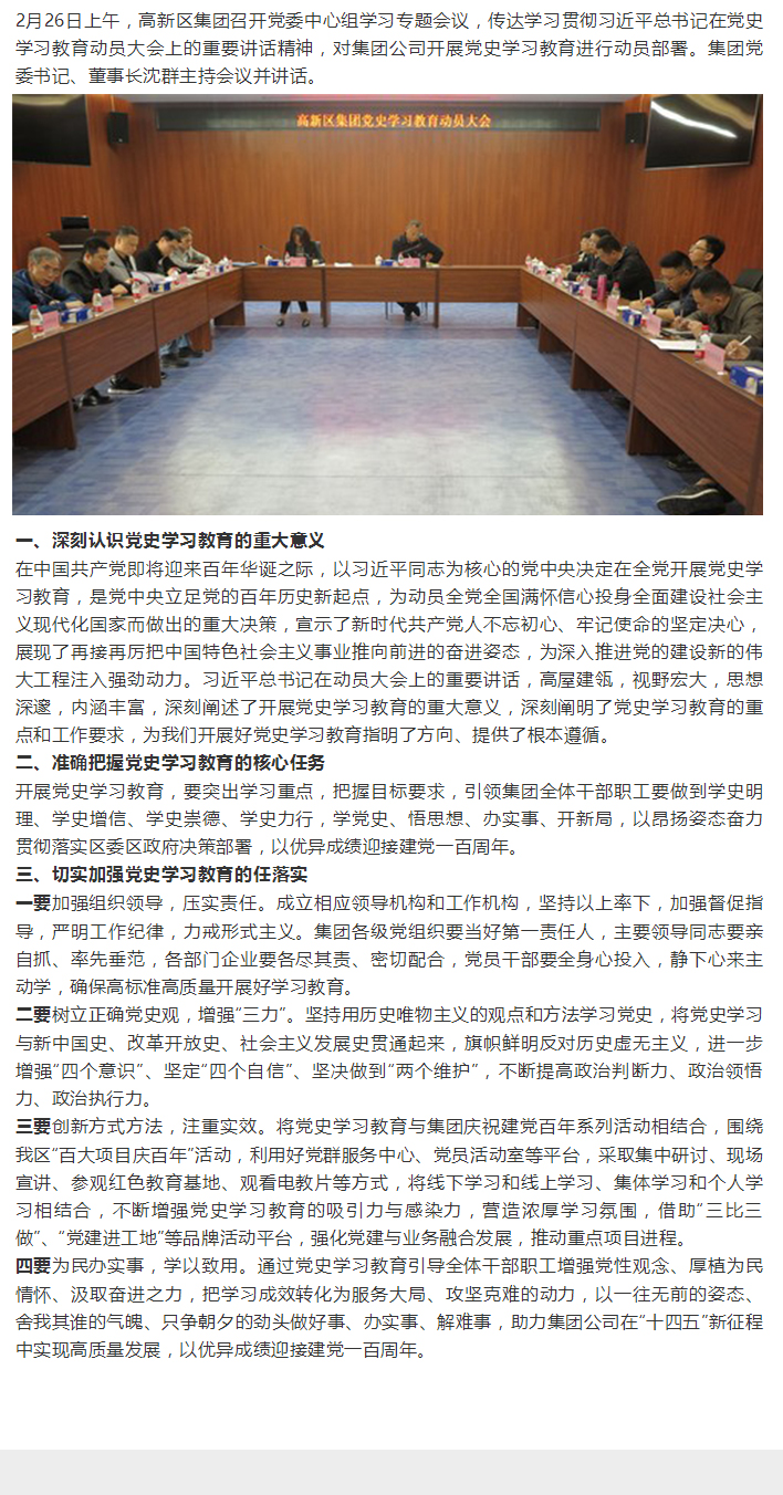 - 黨建動態(tài) - 明理 增信 崇德 力行 學黨史,慶百年—高新區(qū)集團開展黨史學習教育動員